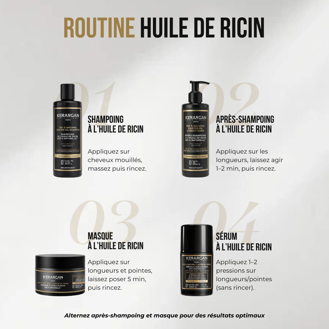 Ensemble Anti-Chute Shampoing, Après-shampoing, Masque & Sérum à l’Huile de Ricin - 800ml